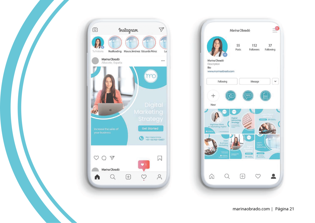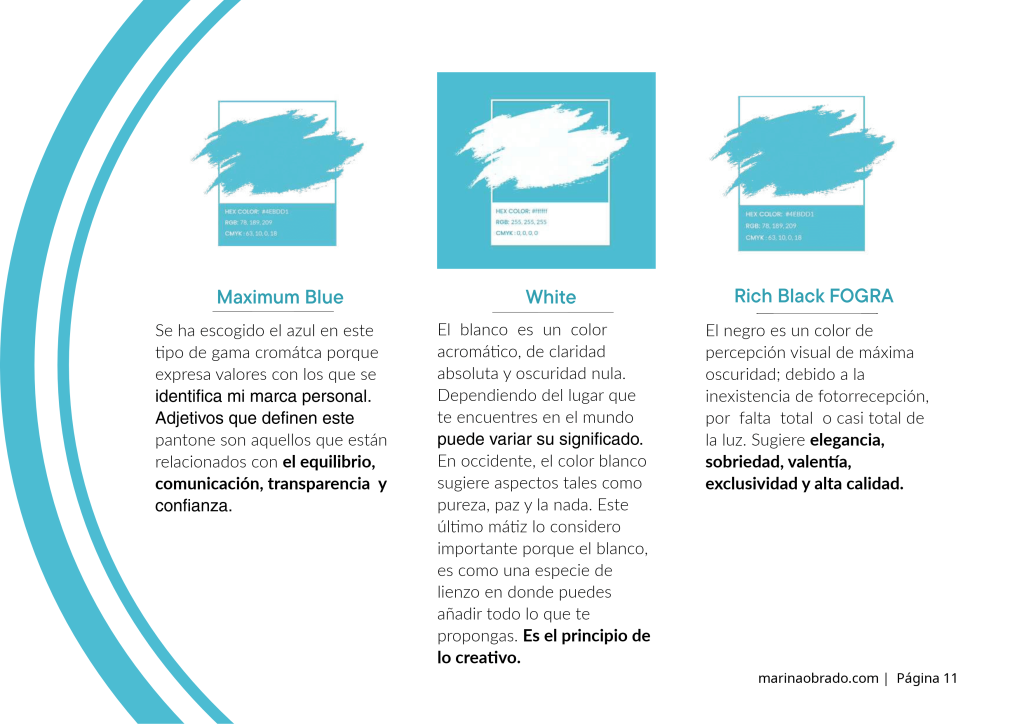 La estética minimalista, la tipografía limpia y la paleta de colores en tonos azules transmiten confianza y serenidad, cualidades que considero esenciales en cualquier estrategia de marca.